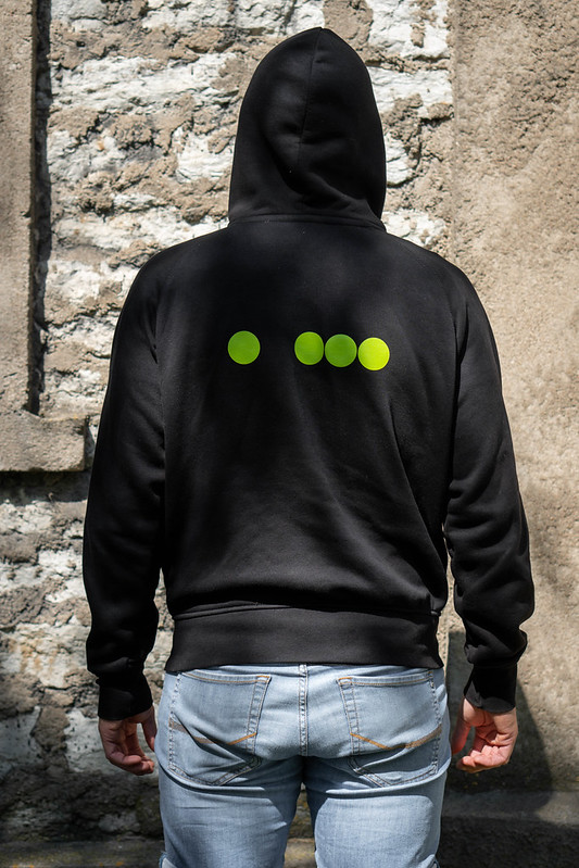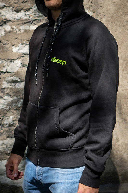 Darkish hoody with a deep and windproof hood, 2 pockets, 2 strings for hood fastening, modern zipper.